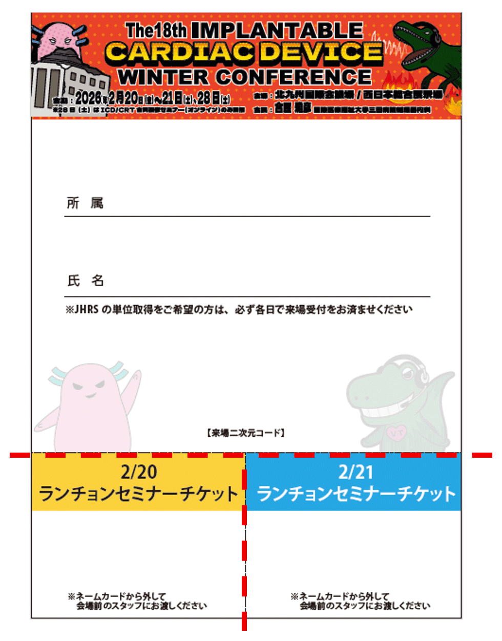 事前申込済の方は、受付時、ネームカードと一緒にランチョンセミナーチケットが印字されます。